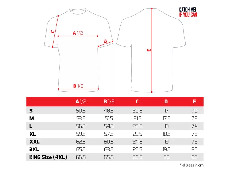 Sama majica je visoke kakovosti, prav tako kot uporabljen barvni tisk. Ponujamo jo v širokem razponu velikosti od S do KING SIZE (kar ustreza 4 + XL, kar v večini držav imenujejo XXXXXL). Model velikosti King bo igrivo oblekel tudi najmogočnejše ribiče, težke 135 kg +.
