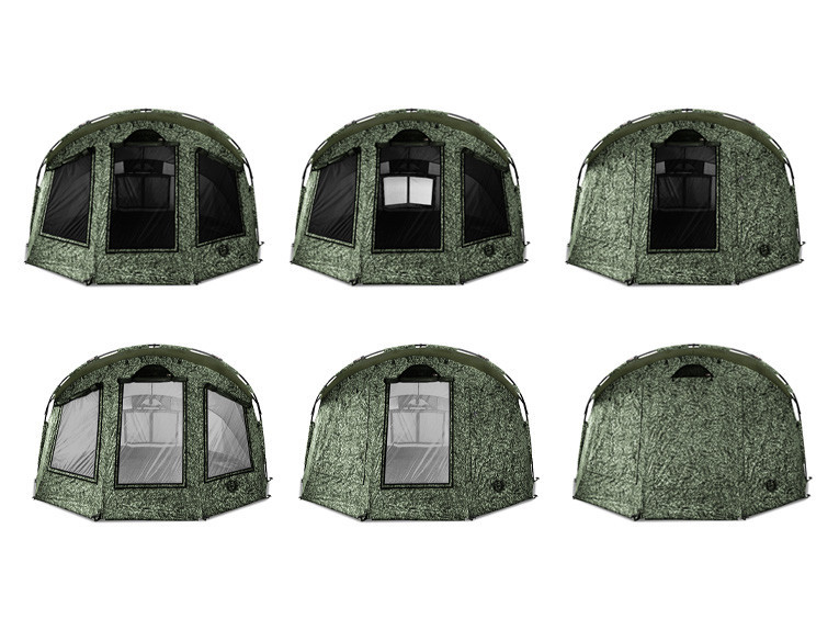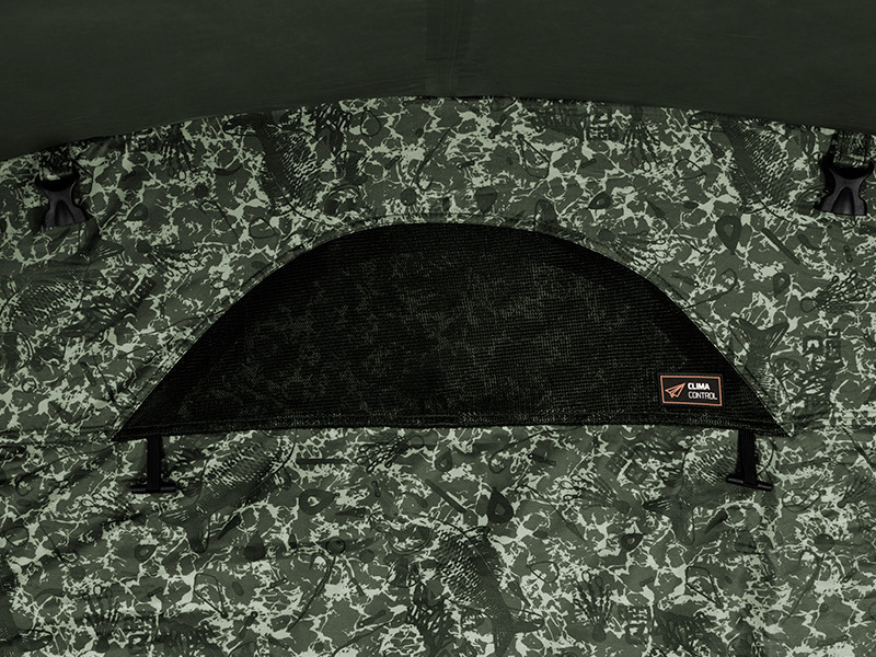 » V zeleni barvi, s kamuflažnim vzorcem» Izjemno močna konstrukcija s 3 rebri» Stabilen v vseh vremenskih razmerah» Iz kakovostnega materiala» Z lepljenimi šivi» Z veliko prostora za gibanje» Velika markiza» Ročaj za pritrditev palic» Velika okna» Clima Control sistem» Osnovna tla s pritrditvijo na zadrgo