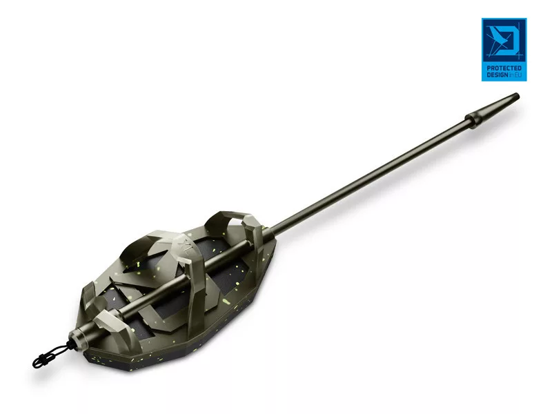Eden najpomembnejših tehničnih elementov košare je jeklena utež, ki nadomešča tradicionalni svinec in s svojo 40-gramsko maso omogoča stabilen let in varen pristanek na dno. Različica XL ima posebno rebrasto obliko, ki pušča več prostora za vabo, tako da se na njej udobno prilegajo tudi večje pelete ali bojle. Edinstveni izboklini na spodnji površini uteži zagotavljata, da se montaža stabilno ustavi tudi na nagnjenih obrežjih ali pri šibkem toku, in se ne premika med hranjenjem rib.