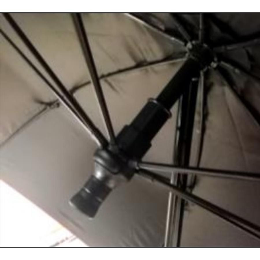 Okvirna konstrukcija je izdelana iz 8 mm masivne smole, ki je bistveno lažja od svojih jeklenih kolegov, a kljub temu zagotavlja izjemno stabilnost – tako je dežnik tudi v močnem vetru neomajen spremljevalec. Notranja višina dežnika je povečana, s čimer se udobno namestite pod njim, sede ali celo z manjšo opremo.