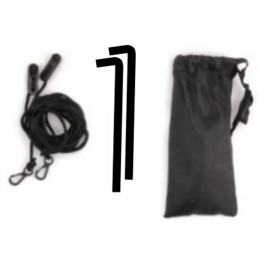 » Sredinska palica, ki se zapiči v zemljo, in sistem zank z vrvmi za odpornost na veter.