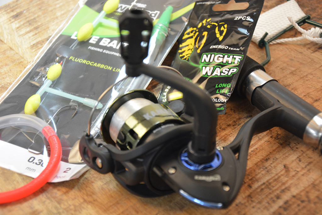 K kolutu Kamasaki Uni 3000 s prednjo zavoro, ki je priložen palici, predstavlja odlično razmerje med ceno in kakovostjo, njegovo zanesljivo delovanje in estetski videz pa se popolnoma prilegata setu. Gladko delovanje koluta in natančen zavorni sistem pomagata pri natančnih metih in varnem utrujanju, kar je še posebej pomembno pri ribolovu smuča.