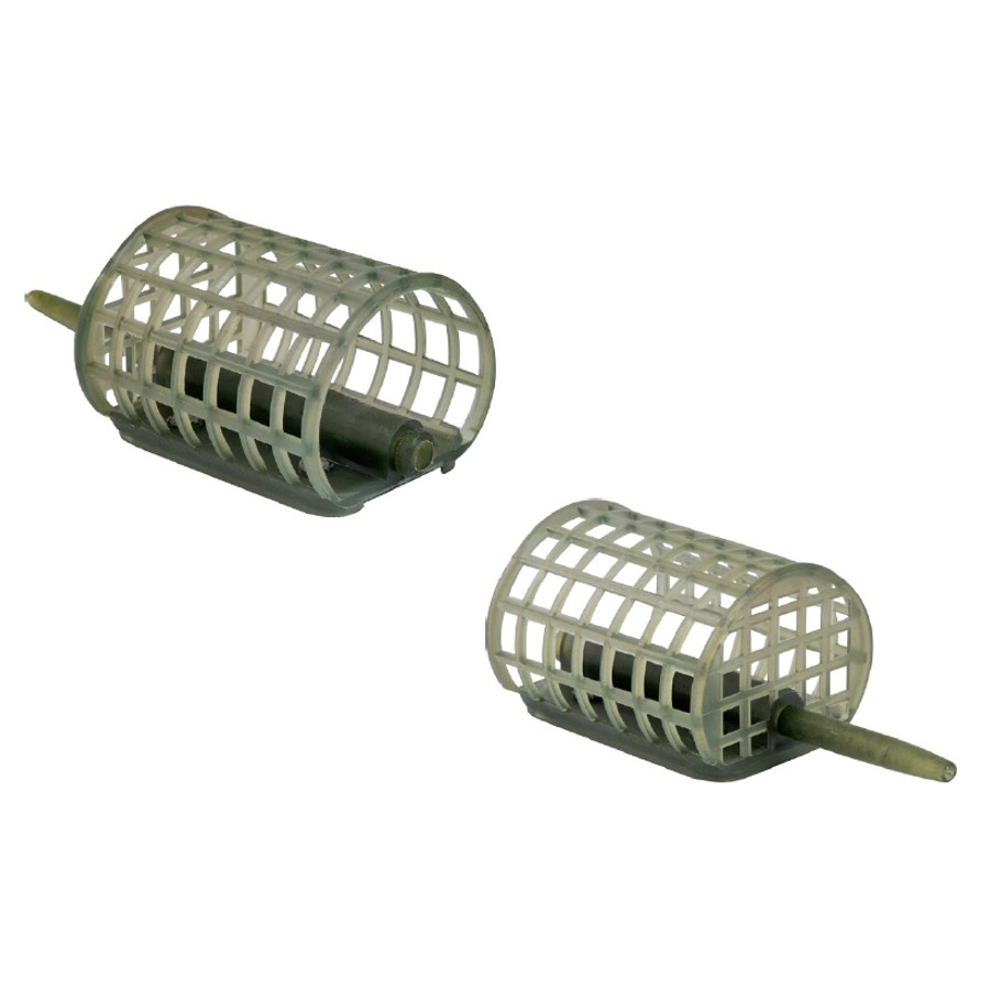Kvadratna mrežna krmilna košarica, katere vsebina se - zahvaljujoč velikosti mreže - hitro hidrira, kar pomeni, da se hitro razgradi. Razgradnja je še posebej hitra pri uporabi lepljenih živih vab. Pri osnovnih krmilih in peletih je razgradnja nekoliko počasnejša, vendar se takoj začne, ko pride v vodo, in se zgodi v relativno kratkem času.Zaradi svoje velikosti in prostornine polnjenja je še posebej primerna za ribolov v stoječih in zmerno tekočih vodah.Košarica je notranje vodena (in-line). Konusni uvodni del na zgornjem delu ima vlogo preprečevanja zapletanja. Zahvaljujoč zasnovi hitrega priključka na spodnjem koncu košarice ima tudi učinek blaženja udarcev. Zaradi tega je po eni strani zelo hitro nastavljiva, po drugi strani pa blaži nenadne udarce, ki izhajajo iz teže napolnjene košarice, s čimer ščiti ostale dele opreme.V paketu sta dva kosa zelene košarice.