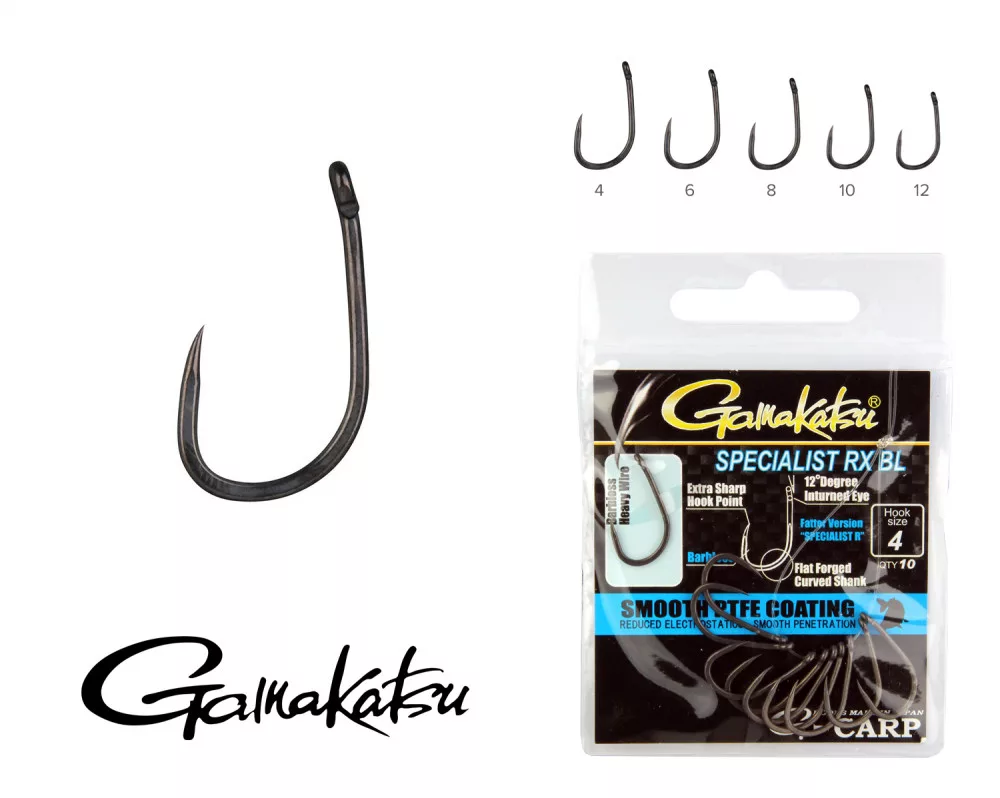 Gamakatsu G-Carp Specialist RX BL Črna 10 10 kosov/paket Z očesom Brez zalustnika Bojli kavelj