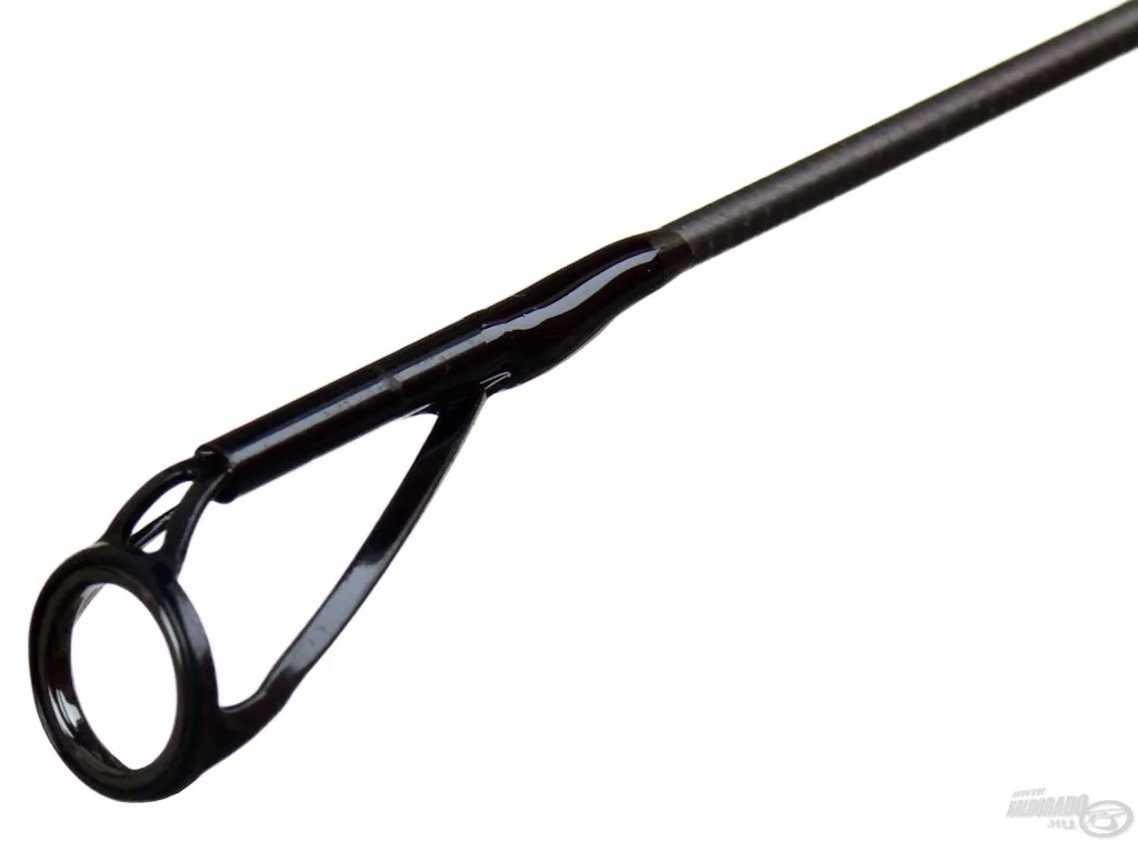 Nad držalom za rolo je okrasna vezava, nato pa je viden le goli blank, ki ob obračanju izrisuje zelo zanimiv vzorec. Mi to med seboj imenujemo 'nagubani karbon'. Material palic je sicer 40-tonski High Modulus Toray Carbon, in na vseh treh palicah je 6 kosov SeaGuide Titanovih dvojnih vodil, ki pomagajo pri dolgih metih.By Döme Black Edition 3.90 m 3,5 Lbs