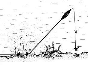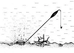 Potapljaška plovec se zaradi vzgona telesa plovca postavi pod kotom približno 45°, dolgo steblo (30 cm) dvigne trnek, ki lebdi v oblaku sproščajoče se krme. Sistem se ne potopi niti na blatnem dnu. Sistem preprosto pritrdimo na glavno vrvico s strani rebraste košare.