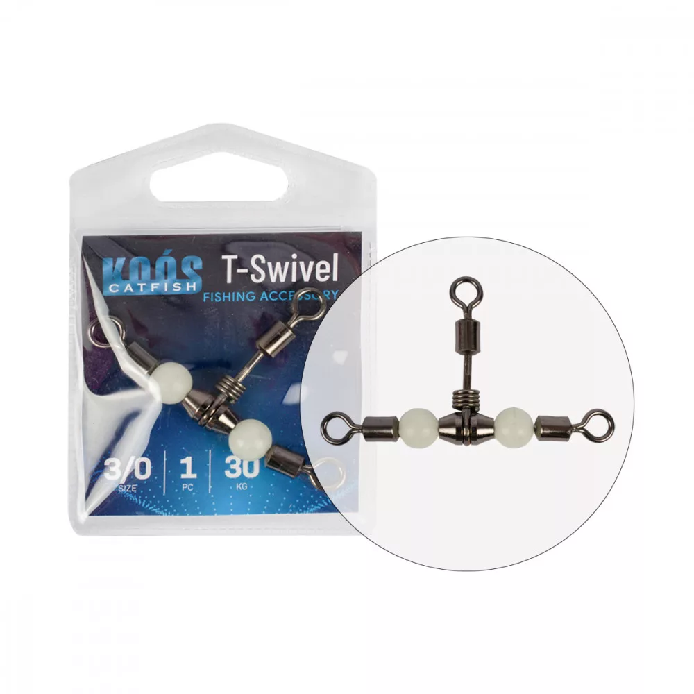Koós T vrtljivka za lov soma - Za naše izdelke z imenom Koós so značilni kakovost in zanesljivost. Jeklene vrtljive zaponke visoke trdnosti so izjemno močne, odlično prenašajo trajne obremenitve, kar se pogosto pojavlja pri ribolovu soma.