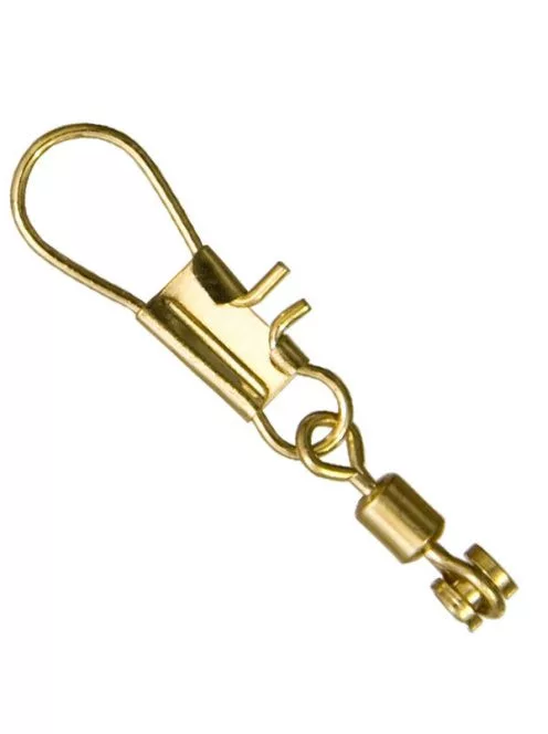 Visokokakovostna, izjemno močna drsna vrtljiva vponka z varnostno zaponko, v zlati barvi.