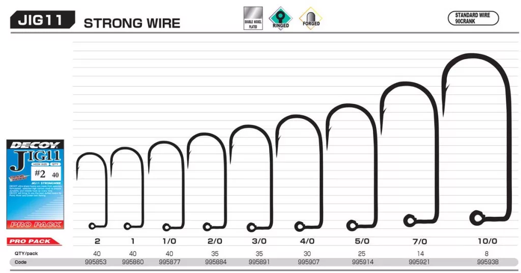 Ocene Decoy Pro Pack Jig11 Strong Wire #2 Füles Szakállas Egyágú Jig Horog 40db
