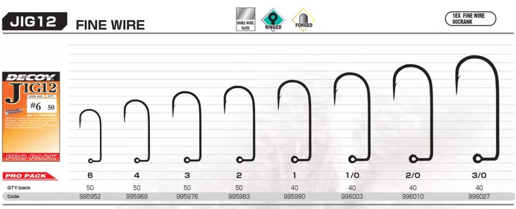 Decoy Pro Pack Jig12 Fine Wire #2/0 Füles Szakállas Egyágú Jig Horog 40db