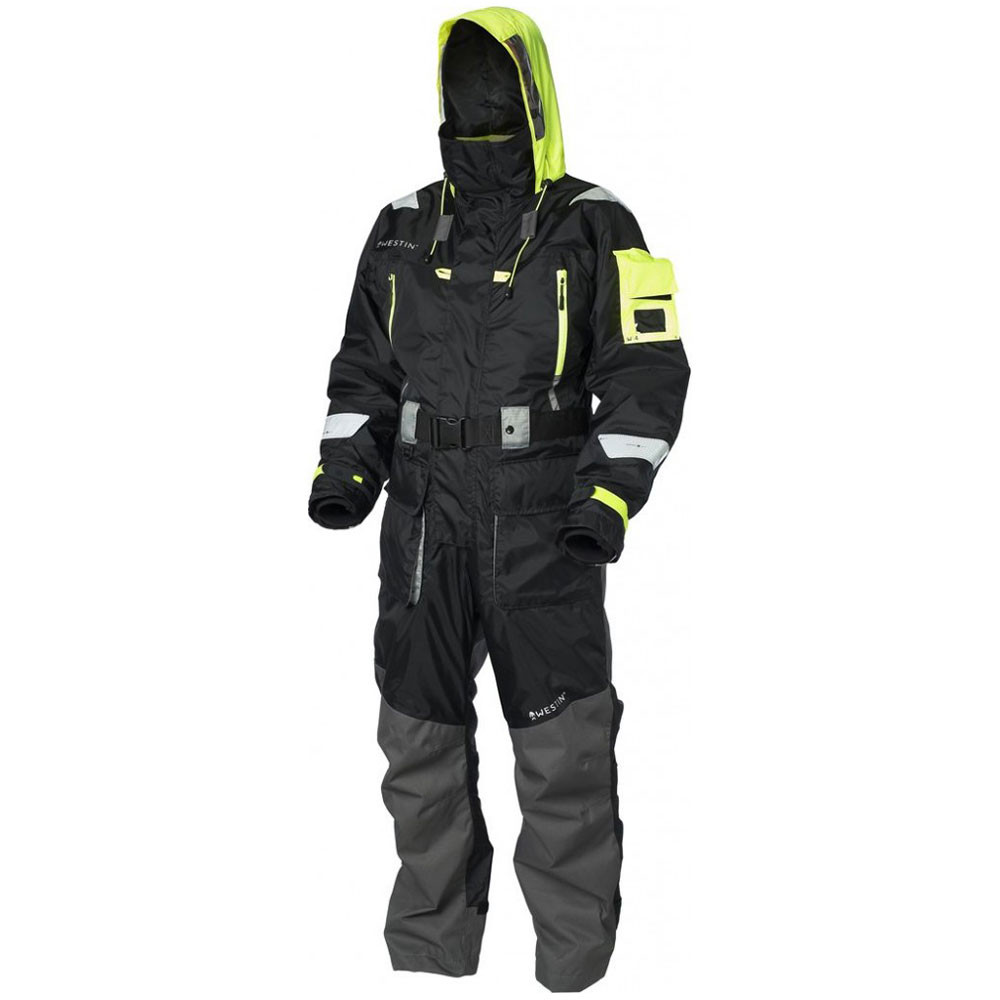 Westin W4 Plavalni kombinezon je visokokakovostna in zanesljiva oprema, zasnovana tako, da ste varni in udobni med vašimi ribiškimi avanturami. Ta obleka je izdelana iz trpežnih in vodoodpornih materialov, kar zagotavlja, da ostanete suhi tudi v najtežjih vremenskih razmerah. Vgrajena je plovnost, ki zagotavlja večjo varnost in mir na vodi.Obleka je opremljena z 9 praktičnimi žepi, tako da lahko udobno shranite svojo ribiško opremo. Izjemno visok ovratnik iz mehkega materiala za optimalno zaščito pred vetrom. Material obleke je 210D najlon s PU premazom in lepljenimi šivi, je vodoodporen, trpežen, toplotno izoliran, lepljeni šivi pa zagotavljajo, da voda ne pronica skozi šive. 210D Nylon Ripstop ojačitve na kolenih in zadnjem delu. Opremljena je z integriranim 'gumbnim fiksnim' pasom. Njen prsni žep je vodoodporen in ima rumeno zadrgo. Ima tudi 2 toplotno izolirana flis žepa, če vas zelo zebe v roke. Notranji žep je enostavno dostopen z glavno zadrgo. VHF žep za radio na levem ramenu z oznako velikosti in oknom, ki ni vodoodporno. Manšete na zapestjih so nastavljive z neoprenskimi manšetami. Kapuca je snemljiva in nastavljiva z vrvicami, ob straneh pa ima majhno okence za razgled.DS/EN ISO 12402-6 ima certifikat in je opremljena s piščalko s certifikatom DS/EN ISO 12402-8. Ne glede na to, ali lovite iz čolna ali na obali, je Westin W4 Plavalni kombinezon bistvena oprema, ki vas bo ohranjala tople, suhe in varne med ribolovom.
