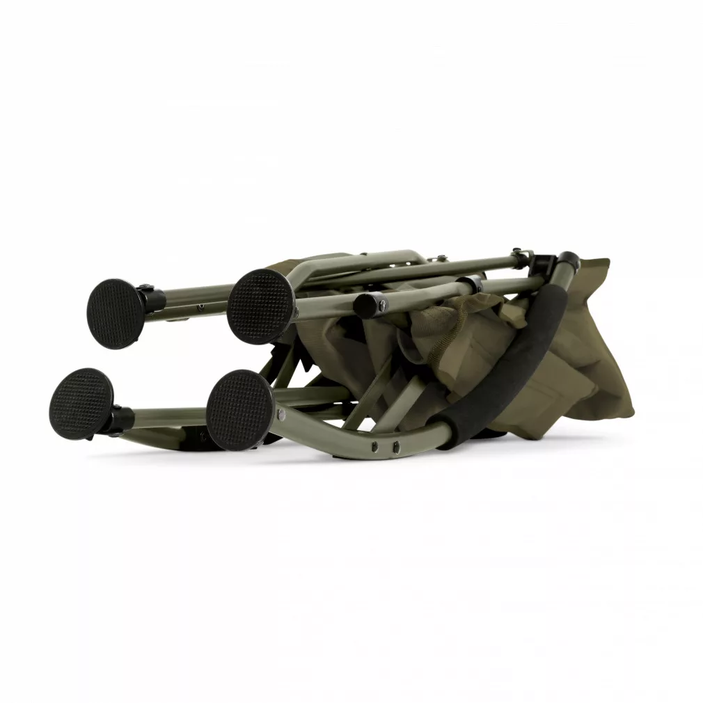 EVA oblazinjenje na naslonih za roke zagotavlja dodatno udobje, še posebej med dolgotrajnimi ribolovnimi obdobji. Kompaktna velikost in lahka teža nizkoprofilnega stola olajšata prevoz in shranjevanje. Enostavno ga je zložiti, kar zagotavlja prostorsko varčno rešitev za ribiče.