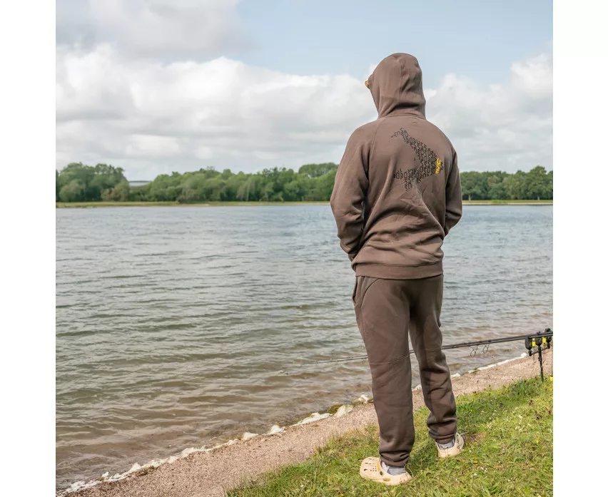 Avid Compound Joggers je premium trenirka v šotni rjavi barvi, zasnovana posebej za ribolov in aktivne prostoročne dejavnosti. Material hlač je 80% bombaž in 20% poliester, kar zagotavlja idealno ravnovesje med udobjem, toploto in vzdržljivostjo. Debelina materiala 290 gramov zagotavlja odlično toplotno izolacijo v hladnejšem vremenu, a je kljub temu dobro zračna, zato je primerna za celodnevno nošenje.