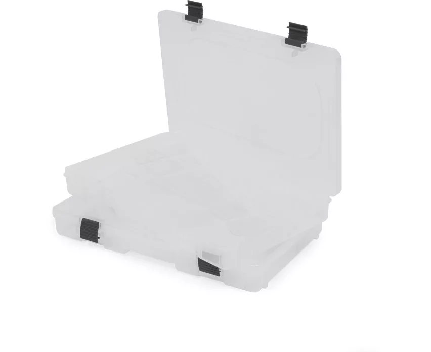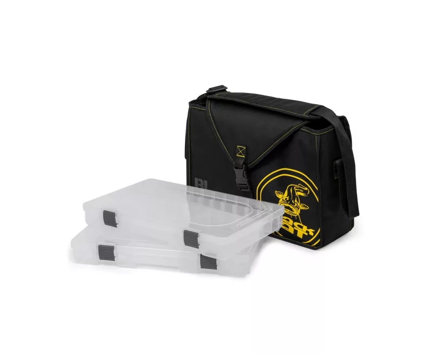 Mere torbe so 38 × 26 × 13 cm, v notranjosti pa sta dve veliki škatli za umetne vabe (36 × 22,5 × 4,5 cm), v katerih lahko organizirano shranite različne vabe, sponke, trnke in druge drobne predmete. Robustno sprednje zapiranje stabilno drži vsebino torbe in preprečuje nenamerno odpiranje. Nastavljiv, oblazinjen naramni pas zagotavlja udobno prenašanje, ne glede na to, ali gre za sprehode ob bregu ali ribolov s čolnom.