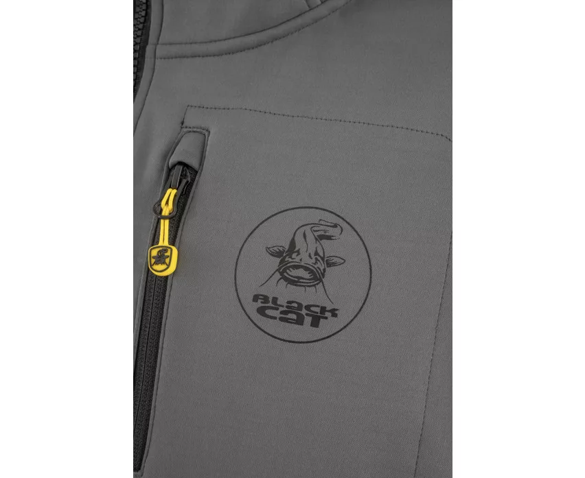 Black Cat Cat Shield Wind Blocker Jacket je tehnična vetrovka, posebej razvita za ribolov in dejavnosti na prostem. Kot del kolekcije Cat Shield ta jakna nudi zanesljivo zaščito pred vetrom in vlago, hkrati pa zagotavlja maksimalno udobje na obali, tudi več ur. Material jakne je 100% poliester, ki je odporen na veter in vodo, zato učinkovito ščiti pred vremenskimi vplivi. Mehka flis podloga na notranji strani zagotavlja prijetno toploto, še posebej v hladnih, vetrovnih dneh.