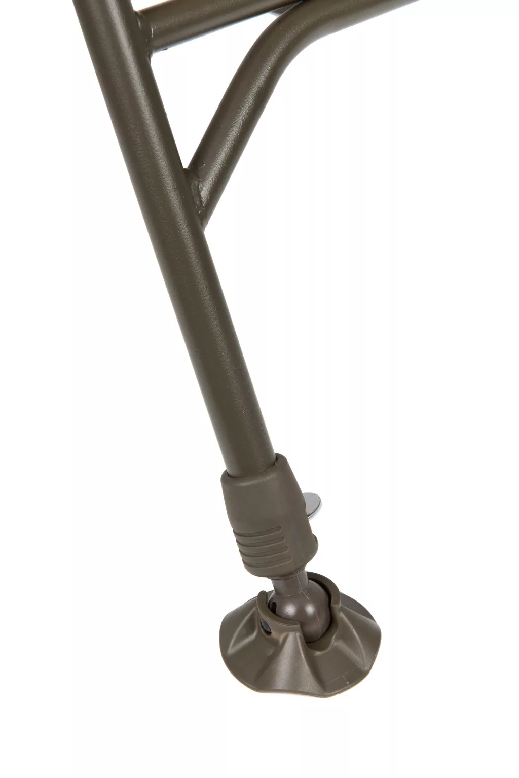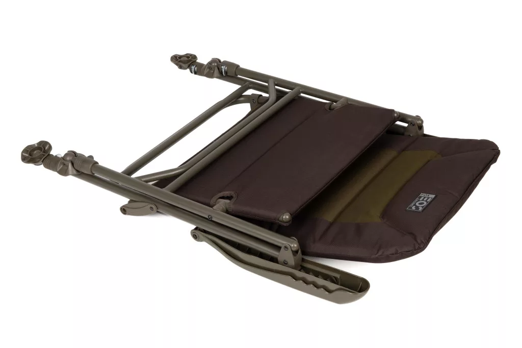 Stol je na voljo v kombinaciji kaki in temno kaki barve, ki se harmonično zlije z naravnim okoljem in zagotavlja diskreten videz ob vodi. Oblazinjeno oblazinjenje zagotavlja udobno sedenje tudi med daljšimi ribolovi, medtem ko udobni nasloni za roke prispevajo k sproščeni drži. Naslonjalo je mogoče nagniti nazaj, tako da je stol odličen ne le za aktivni ribolov, temveč tudi za počitek in sprostitev.
