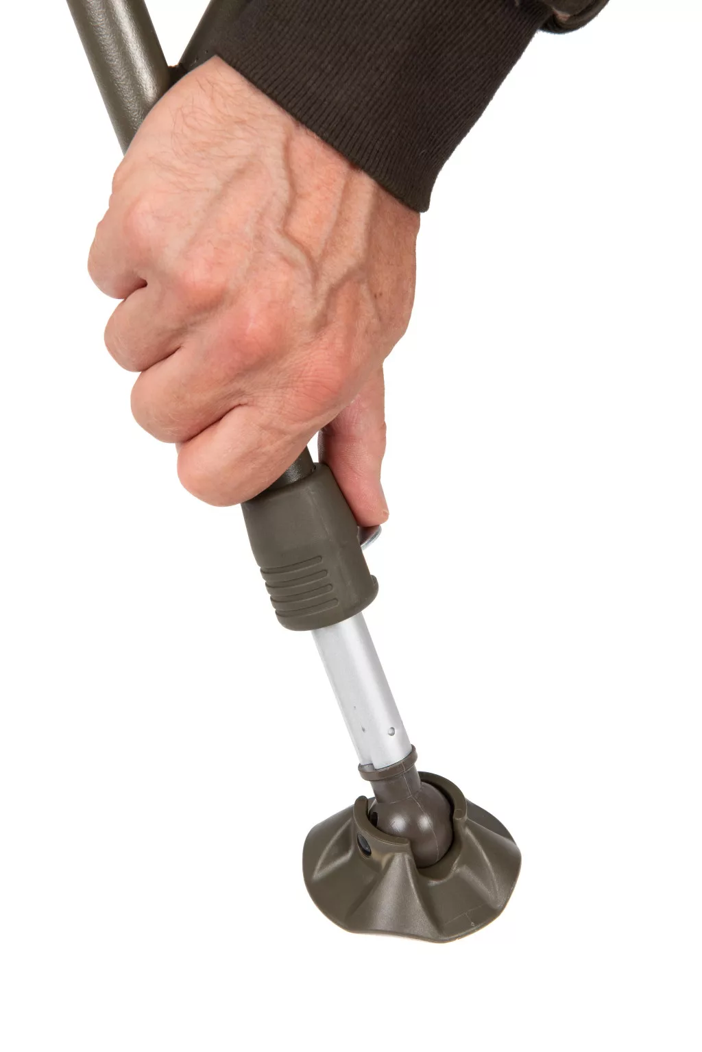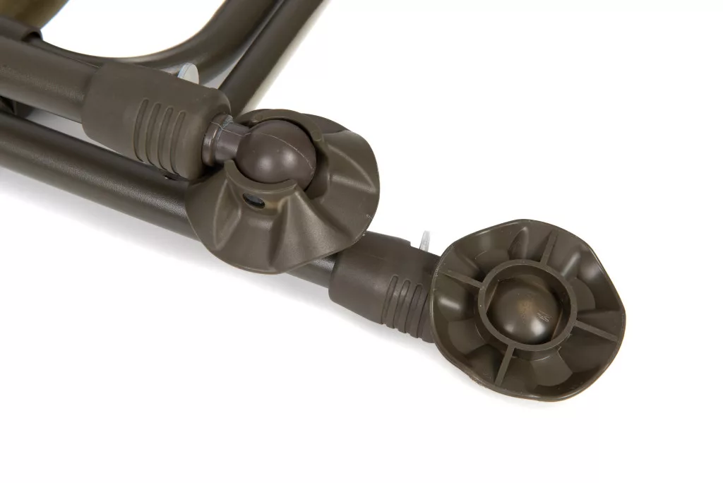 Stol Fox EOS Standard je enostavno zložljiv, kar olajša transport in shranjevanje. Vse štiri noge so popolnoma nastavljive, tako da je stol mogoče enostavno prilagoditi vsem terenskim razmeram. Vrtljive blatne noge na vseh nogah zagotavljajo stabilnost tudi na neravnih, mehkih ali mokrih tleh, kar je še posebej pomembno med ribolovom, ko je breg pogosto spolzek ali močviren.