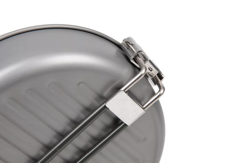 Posode imajo trpežne, zložljive ročaje, ki omogočajo varno rokovanje in kompaktno shranjevanje. Elementi kompleta so zložljivi enega v drugega: čajnik v manjšo posodo, nato večja posoda in na koncu ponev zaključuje vrsto, kar ponuja izjemno prostorsko varčno rešitev. Celoten komplet je na voljo v mrežasti vrečki z vrvico, ki olajša transport in ščiti posodo.