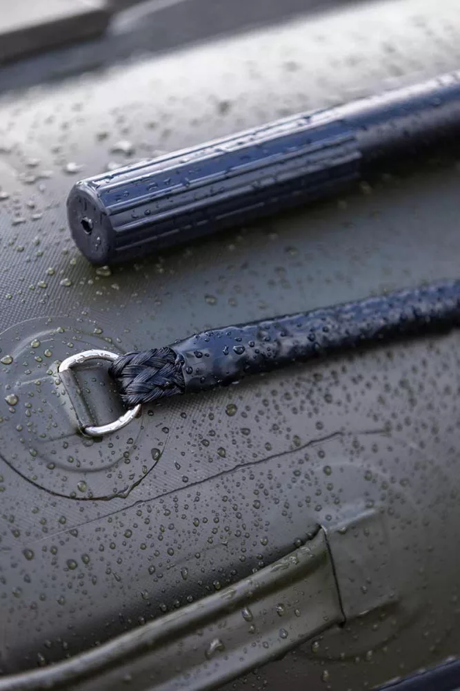 Čoln je izdelan iz 0,9 mm debelega, ojačanega PVC materiala, ki ni le trpežen, temveč se s svojo edinstveno kaki barvo Fox izstopa od tradicionalnih modelov. Zunanji tubusi premera 41 cm dodatno povečujejo stabilnost, kar vam omogoča enostavno manevriranje tudi v vetrovnih in valovitih razmerah. Edinstvena zasnova konca tubusa in dvignjen premec zagotavljata odlične navigacijske lastnosti, kar olajša vodenje čolna tudi v močnejšem vetru.