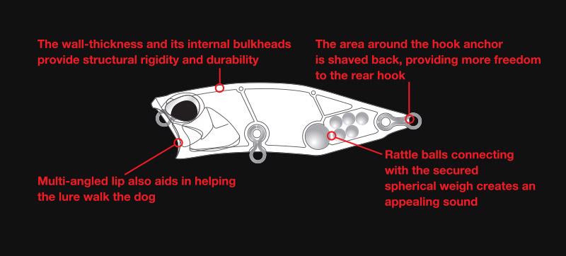 Če pogledate zadnji del večine popperjev, boste opazili, da je oblikovalec tam preprosto končal delo. Zadnji del Realis Popper 64 je agresivno zožen. Ima oster vzhod, ki je gladko obdelan na spodnjem delu. To pomaga pri gibanju 'walk the dog'. Območje pritrditve trnka je gladko obdelano nazaj, da zadnjim trnkom omogoči več prostora za gibanje.
