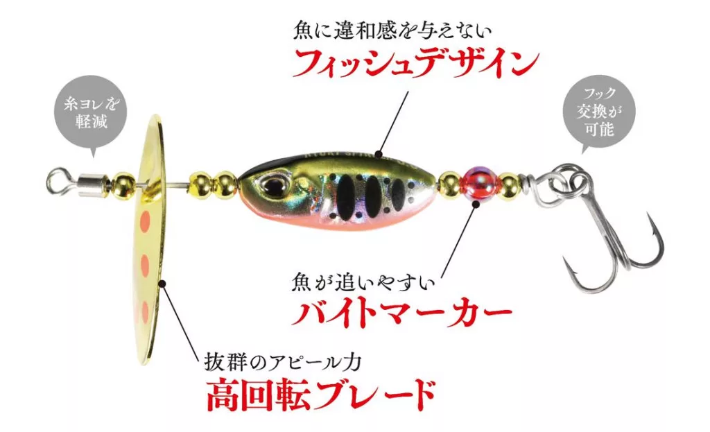Opremljen je s telesom "vabe", ki zagotavlja dolge mete! Univerzalni japonski spinner, ki se lahko uporablja v stoječih vodah in močnih tokovih.