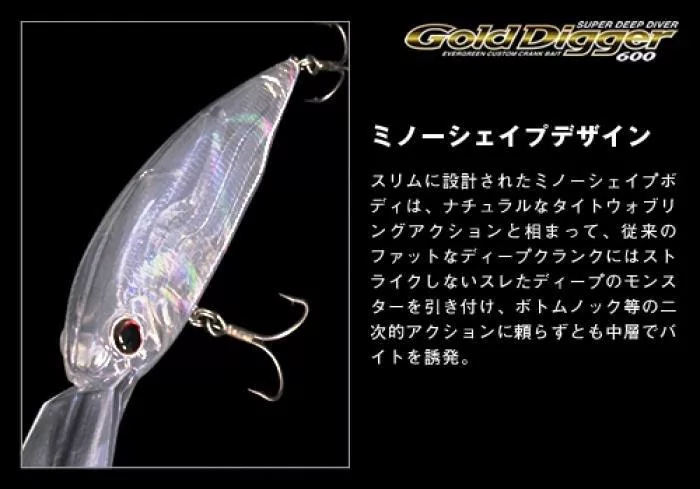 Evergreen Gold Digger 600 je plavajoči tip voblerja, ki je sposoben doseči impresivno globino potopa 5,5-6,0 metra. To ga dela idealnega za ribolov v globljih vodah, jezerih in rekah, kjer se skrivajo večji plenilci. Plavajoča lastnost omogoča, da se ob zastojih previdno dvigne, kar sprovocira dodatne ugrize in pomaga preprečiti zatikanje v ovire, s čimer se minimizira izguba vabe.
