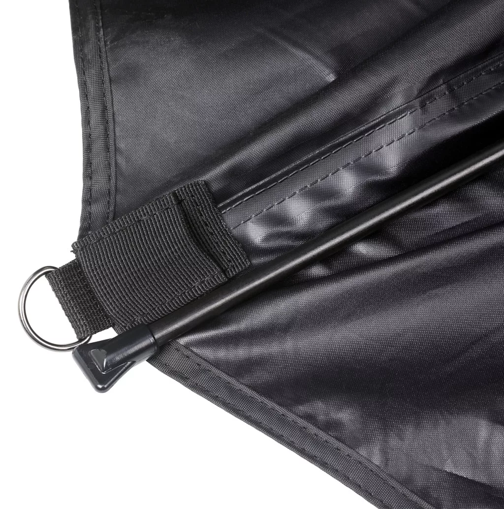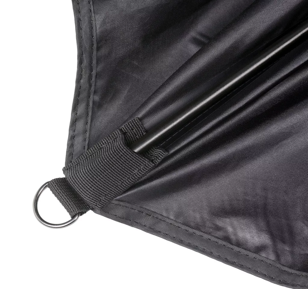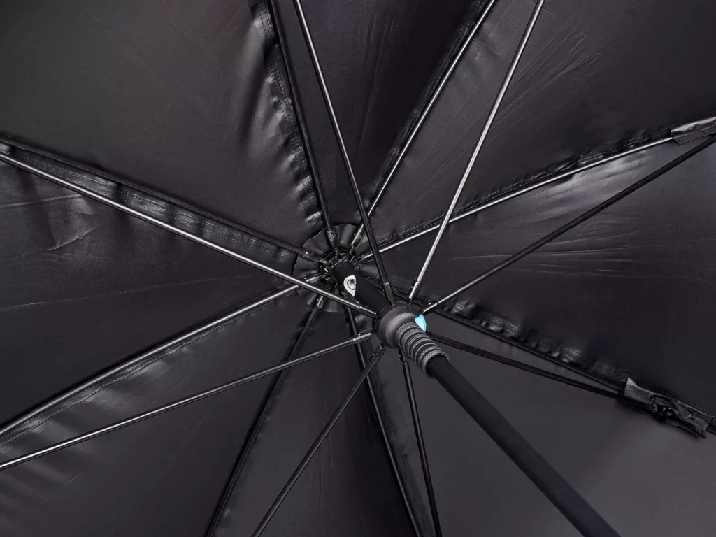 Ponjava visoke natezne trdnosti zagotavlja odlično vodoodpornost, kar omogoča nemoten ribolov tudi v močnem dežju. Zahvaljujoč dolžini reber 2,50 m (tj. uporabnemu premeru 2,20 m) nudi optimalno pokritost, da bo dan ob vodi udoben.