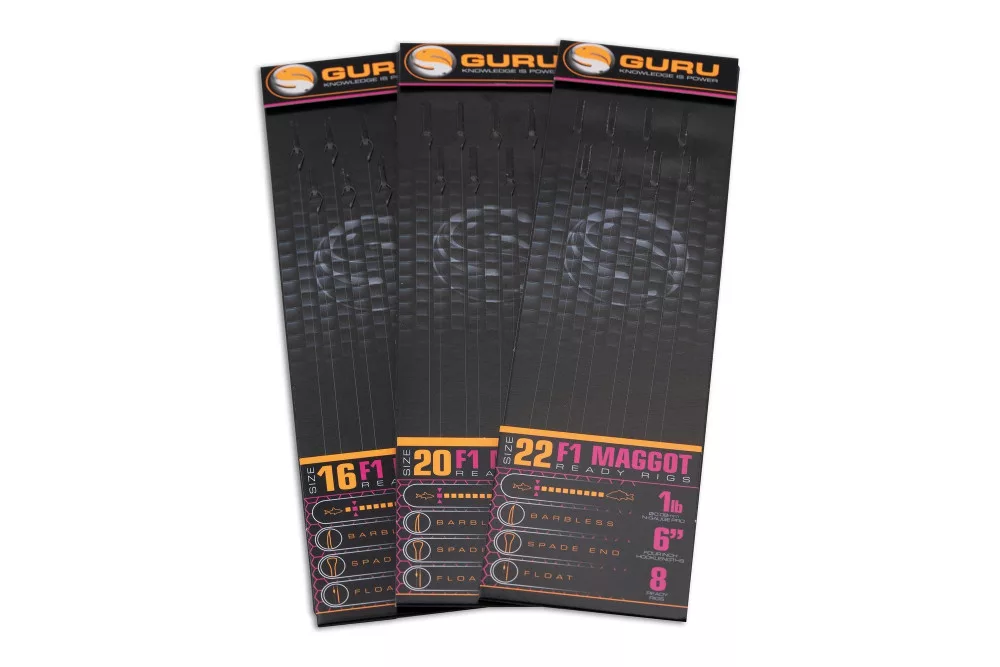 Guru F1 Maggot Hook Rig 20 Vdeven, Brezbradat Predvezan Monofilni Kavelj 8 kosov