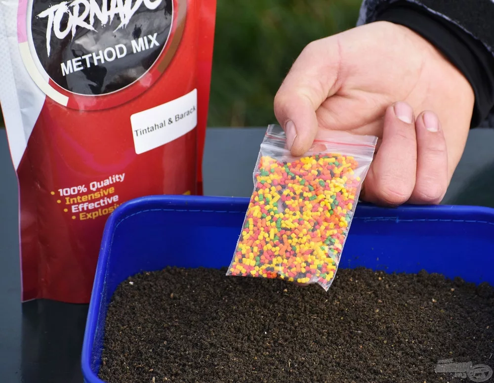 Vsaka vrečka vsebuje majhno vrečko z barvitimi, okusnimi majhnimi peleti. Ribič jih lahko doda osnovni vabi glede na apetit rib. Ponekod so krapu tako občutljivi, da je vsako barvno zrnce opozorilno, drugod pa povečuje apetit. Ribičem prepuščamo, ali jih bodo uporabili ali ne!