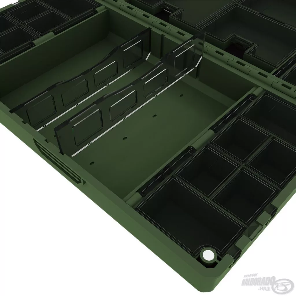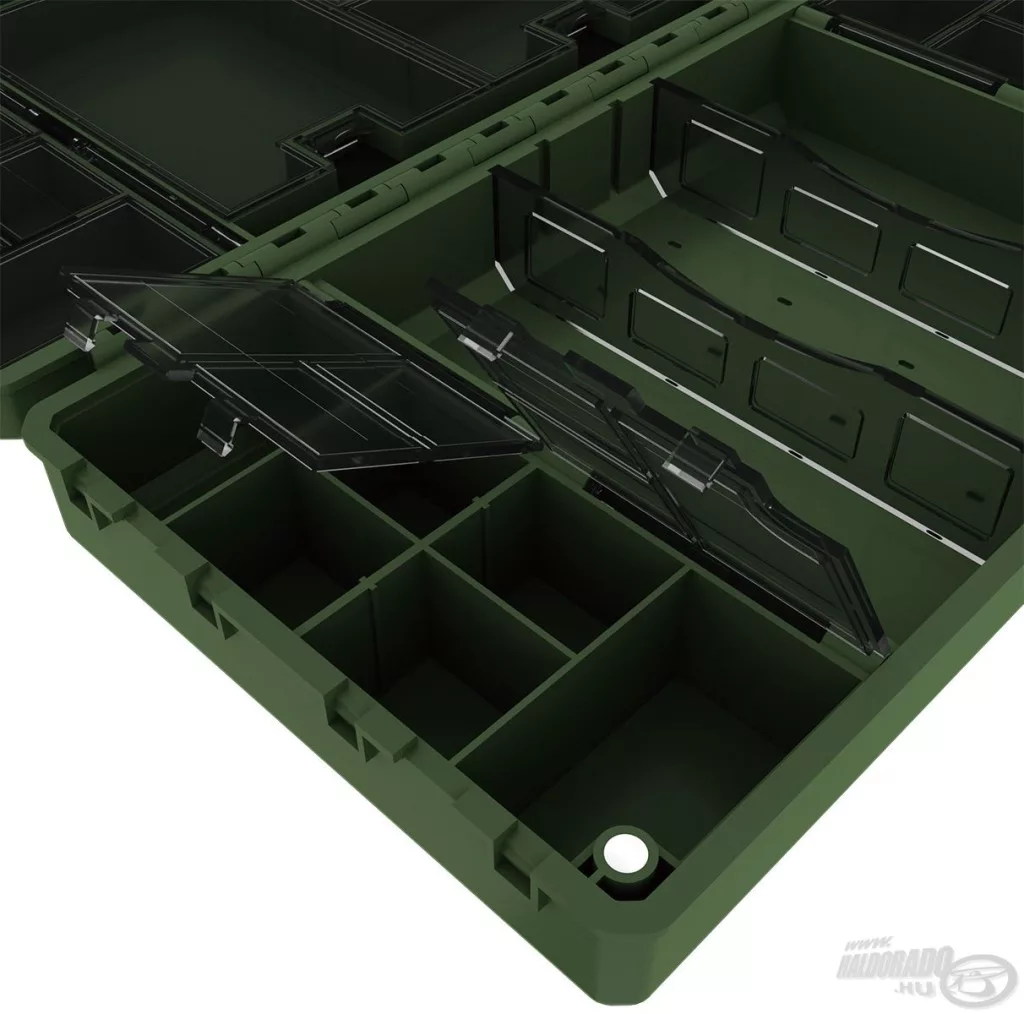 Haldorádó Tackle Box je vsestranska, dobro premišljeno zasnovana škatla za majhne predmete, ki je bila posebej razvita za potrebe krapolovcev in ribičev, ki uporabljajo tehniko feeder. Kot del družine škatel za shranjevanje Haldorádó, predstavljene leta 2025, ta model ponuja popolno ravnovesje med organizacijo, vzdržljivostjo in praktičnostjo, tako da je vsak dodatek pri roki, ko ga potrebujete.