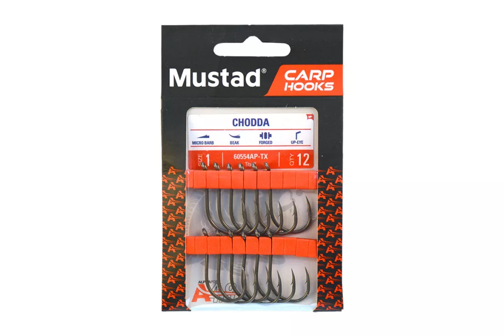 Mustad Carp Chodda 1 Füles, Szakállas Bojlis Horog 12db