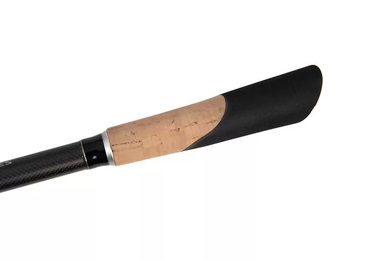 Visokokakovosten dvodelni ročaj iz plute in črne EVA obloge ne služi le udobju, temveč zagotavlja tudi uravnoteženost palice. Med večurnim ribolovom je ta lastnost še posebej ugodna, saj zmanjšuje utrujenost, kar vam omogoča, da se popolnoma osredotočite na ribolov.