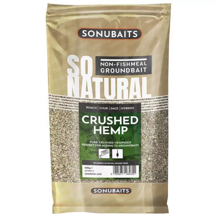SONUBAITS SO NATURAL CRUSHED HEMPSEED 500GR je čisti mleti konopljin semena. Uporablja se lahko kot dodatek, pomešan z vabami.