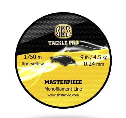 Družina monofilamentnih vrvic SBS Tackle Pro Masterpiece zahvaljujoč novi proizvodni tehnologiji in ko-polimernemu osnovnemu materialu ima znatno odpornost na vozle, zmanjšano sposobnost spomina in visoko natezno trdnost. Zahvaljujoč inovativni površinski obdelavi ima poleg brezhibne UV zaščite tudi odlične lastnosti metanja. Na voljo v naslednjih barvah, premerih in dolžinah: fluo-rumena ali črna, 0.20 mm (3.5 kg) - 1500 m, 0.24 mm (4.5 kg) - 1750 m, 0.27 mm (6 kg) - 1525 m, 0.30 mm (7 kg) - 1240 m, 0.35 mm (9 kg) - 920 m, 0.40 mm (11.4 kg) - 670 m.