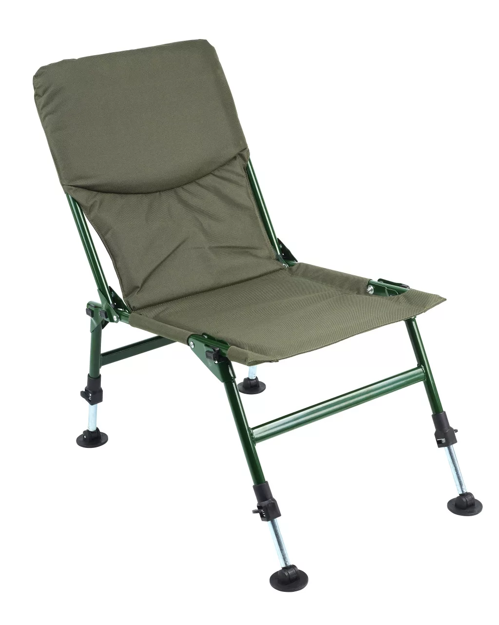 Ena najpomembnejših prednosti izdelka je nastavljiv sistem nog. Vse štiri noge so individualno nastavljive, tako da se stol v trenutku lahko poravna na strmih bregovih ali neravnem terenu. Na koncih nog so veliki, samonastavljivi blatniki, ki preprečujejo, da bi se stol pogreznil v mehka, razmočena tla. Oblazinjenje sedeža in naslonjala zagotavlja dodatno udobje, visoko naslonjalo pa nudi ustrezno oporo zgornjemu delu telesa.