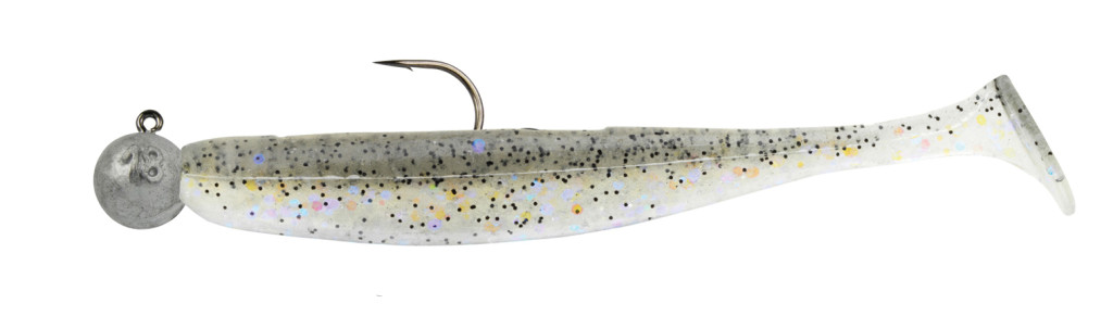 Ta komplet vključuje jig glavo z izjemno ostrimi trnki in umetno vabo z izjemno mehkim telesom, ki je zasnovana v obliki shada.