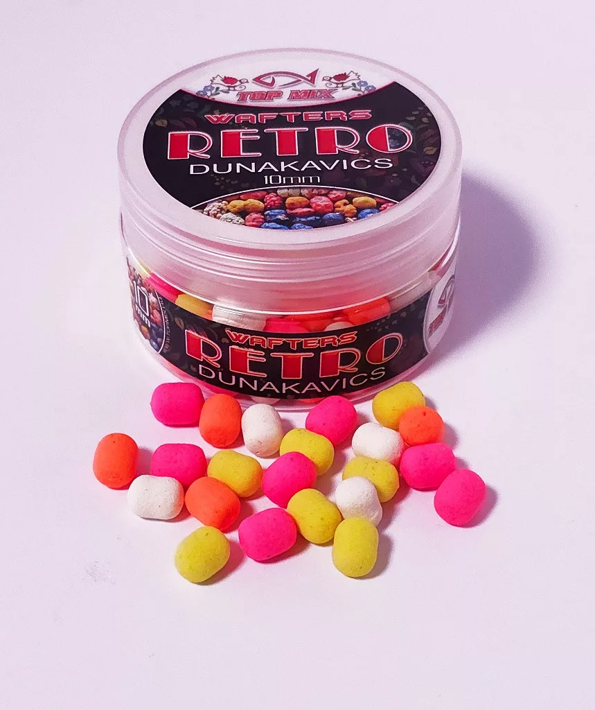 Izdelki Top Mix Retro wafters so bili razviti za feeder ribiče, ki imajo radi privlačne topne vabe. Lahke pelete, vendar ravno toliko, da jih je mogoče uporabiti tudi z drobnimi konicami in trnki #14, celo v najmanjših velikostih 8. Vsi okusi so na voljo v velikostih 8 mm in 10 mm. Njegova sposobnost raztapljanja je intenzivna, 'odprta vaba', tako da poleg arome privablja ribe tudi s svojo vsebnostjo. Njihov retro okus je poklon klasičnim aromam iz obdobja pred letom 2000.