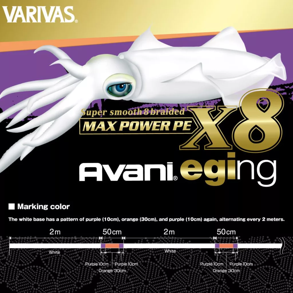 Varivas Avani Eging Max Power PE X8 150m #1,0 20,2lb White Orange Marking Pletena Glavna Vrvica